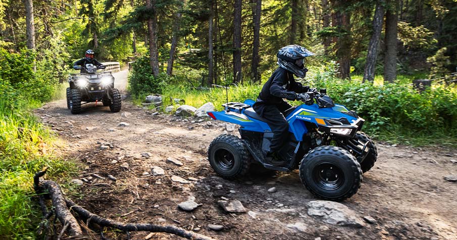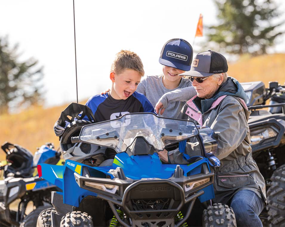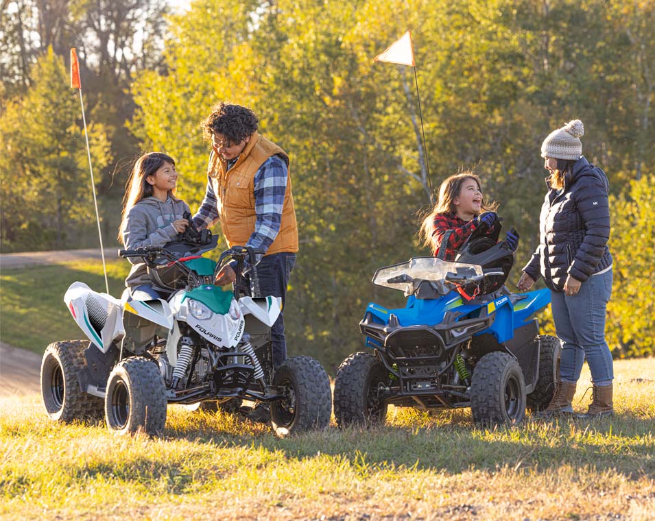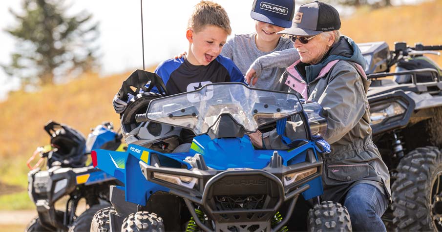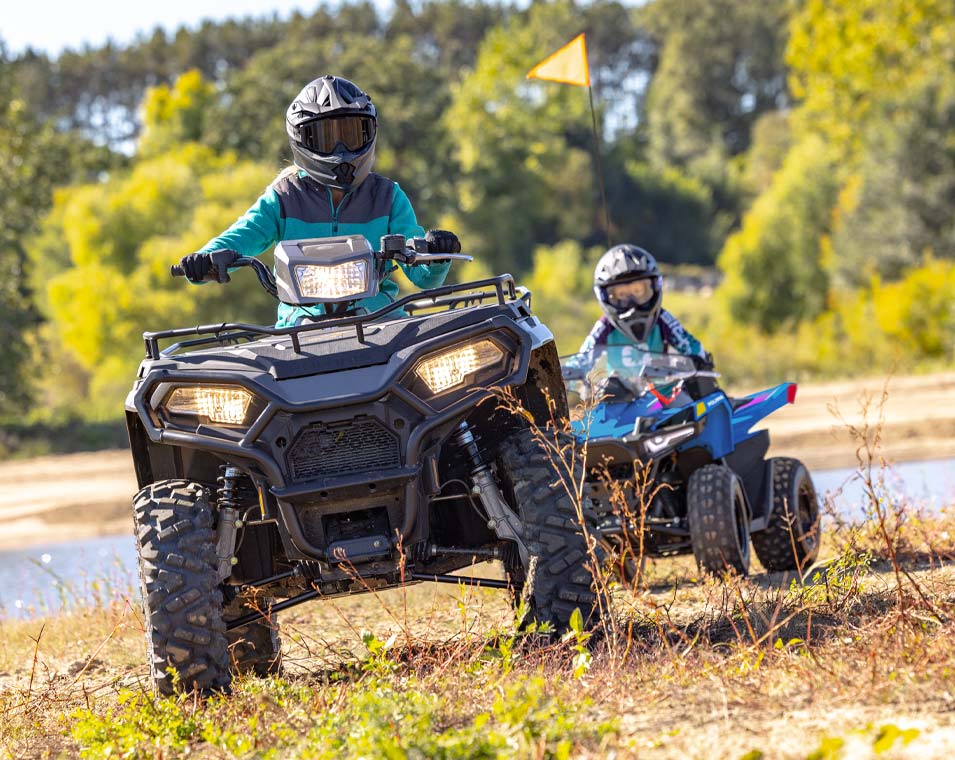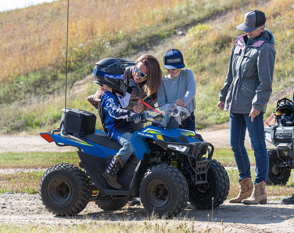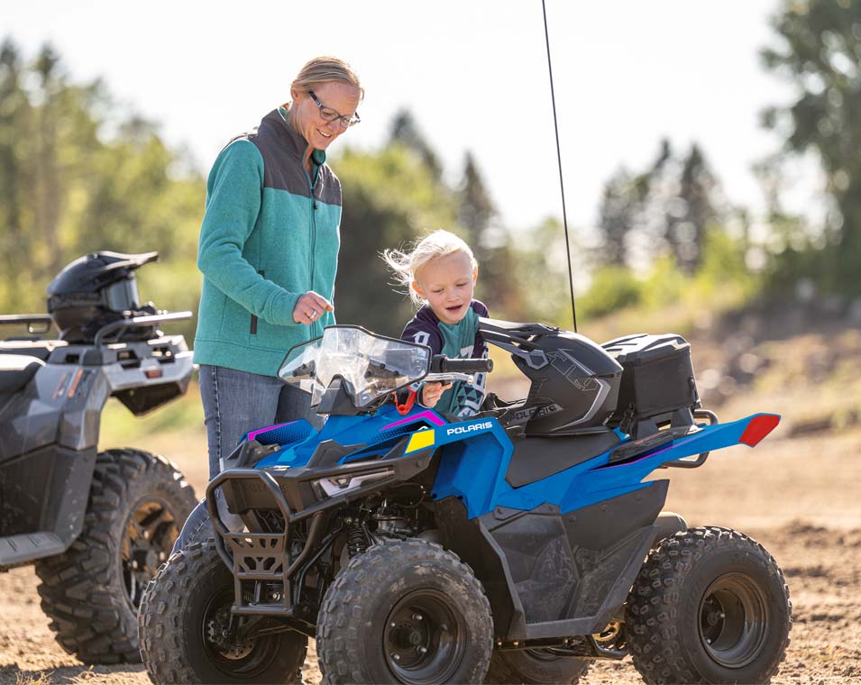 Con un motor EFI de 70 cc y accesorios para permitir que los conductores más jóvenes crezcan con su ATV. Hecho para niños a partir de 6 años.